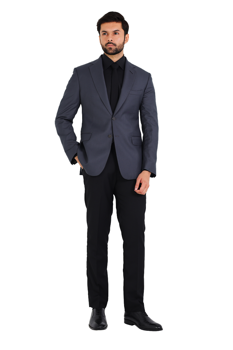 The cealan blazer, tailored in a cotton-wool blend, strikes a balance of strength and subtlety in a deep charcoal grey tone. Designed with a single-breasted cut and a defined notch lapel featuring a non-functional buttonhole, it offers a poised silhouette with modern detailing. Two front buttons, four sleeve buttons with a signature non-functional last, and precise hem stitching underscore its distinct finish. Completed with a curve wallet pocket, lower flap pockets, and a rounded bottom, the cealan blazer delivers a composed fit that moves seamlessly from formal settings to refined casual pairings.