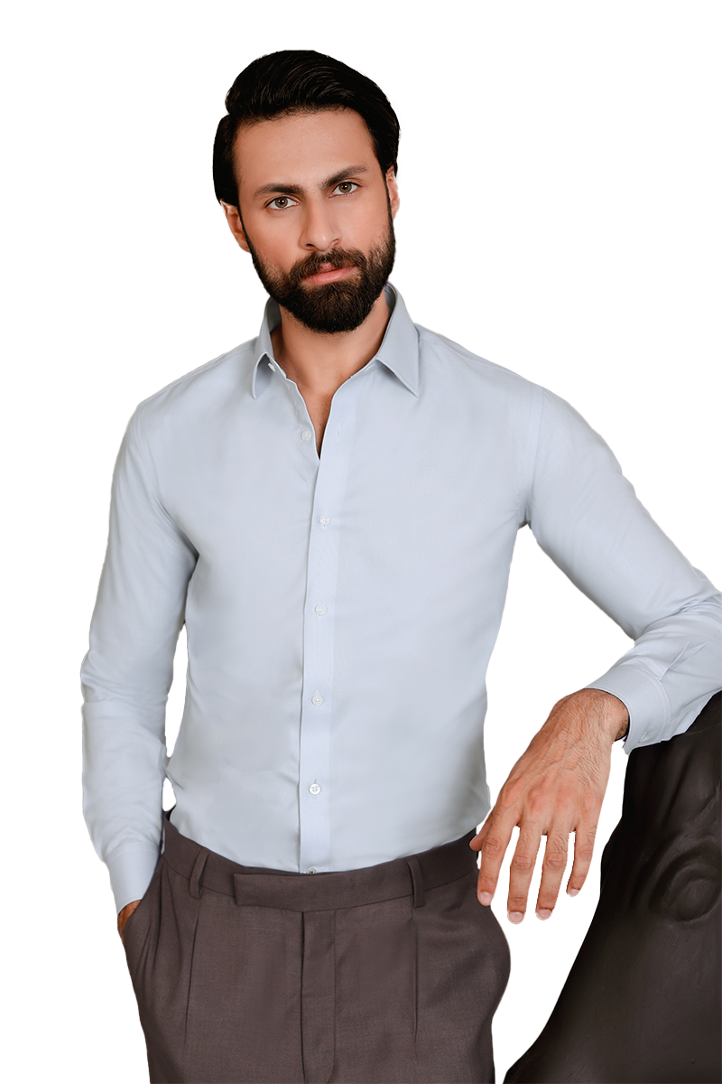 The Resplandor Sky Blue Formal Shirt stands out with its crisp 5-point spread collar, sleek spot front placket, and distinctive single angled cuffs. Offering a fresh and stylish appearance, this shirt adds a vibrant touch to any formal ensemble.