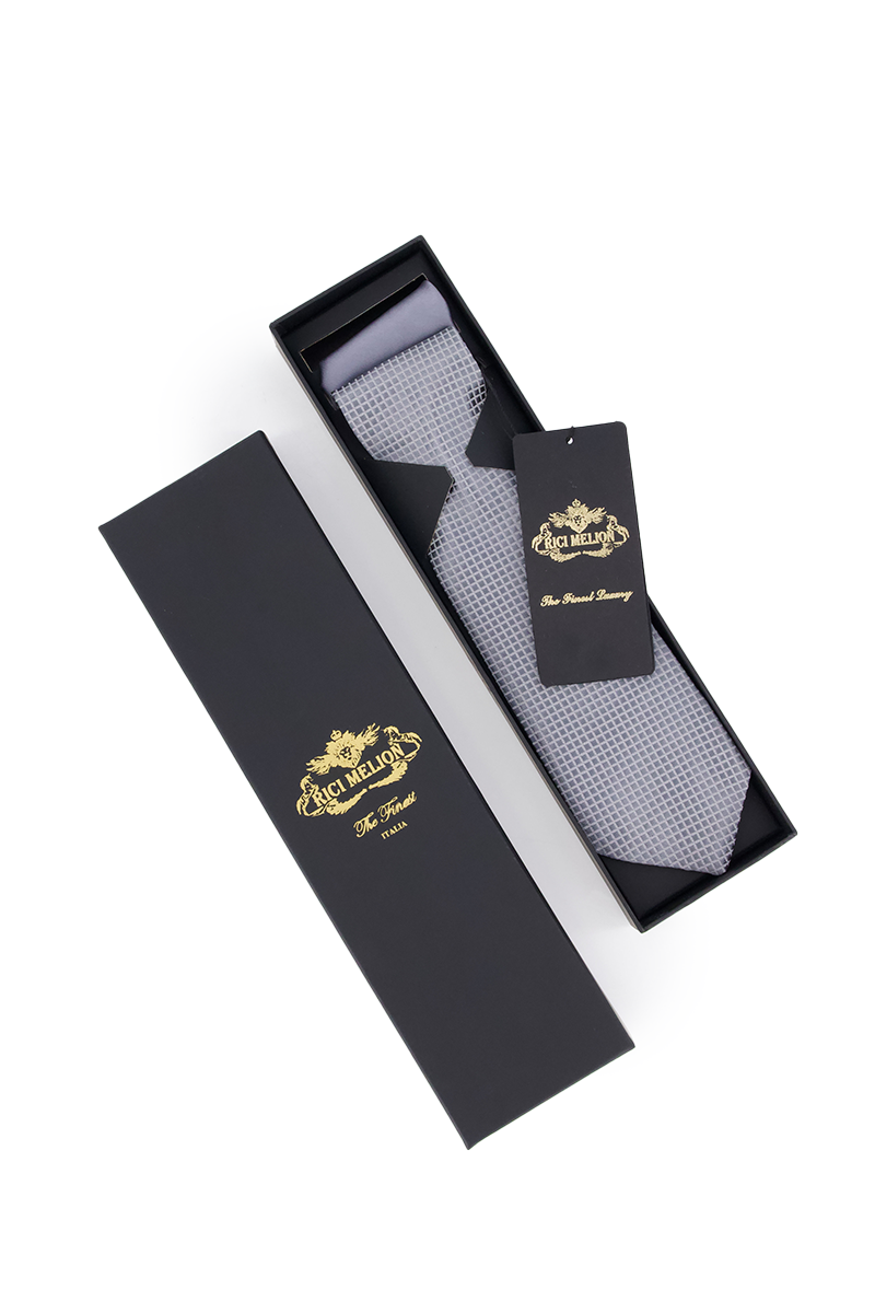 The Limited Edition Grey Tie boasts a sleek design with a refined box pattern on premium silk fabric. Complete with a matching pocket square and an exclusive box, it's the perfect addition to a well-curated wardrobe.