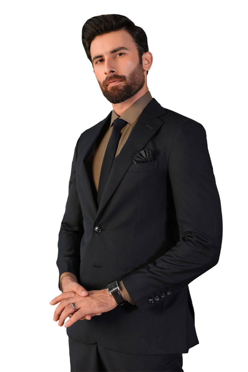 Paired with matching slim-fit trousers, crafted in the same black fabric with cross pockets and a standard waistband, the set delivers ease with intention.
