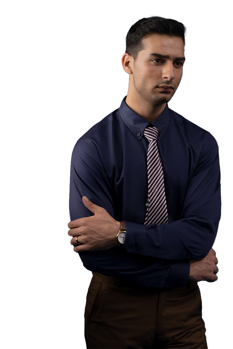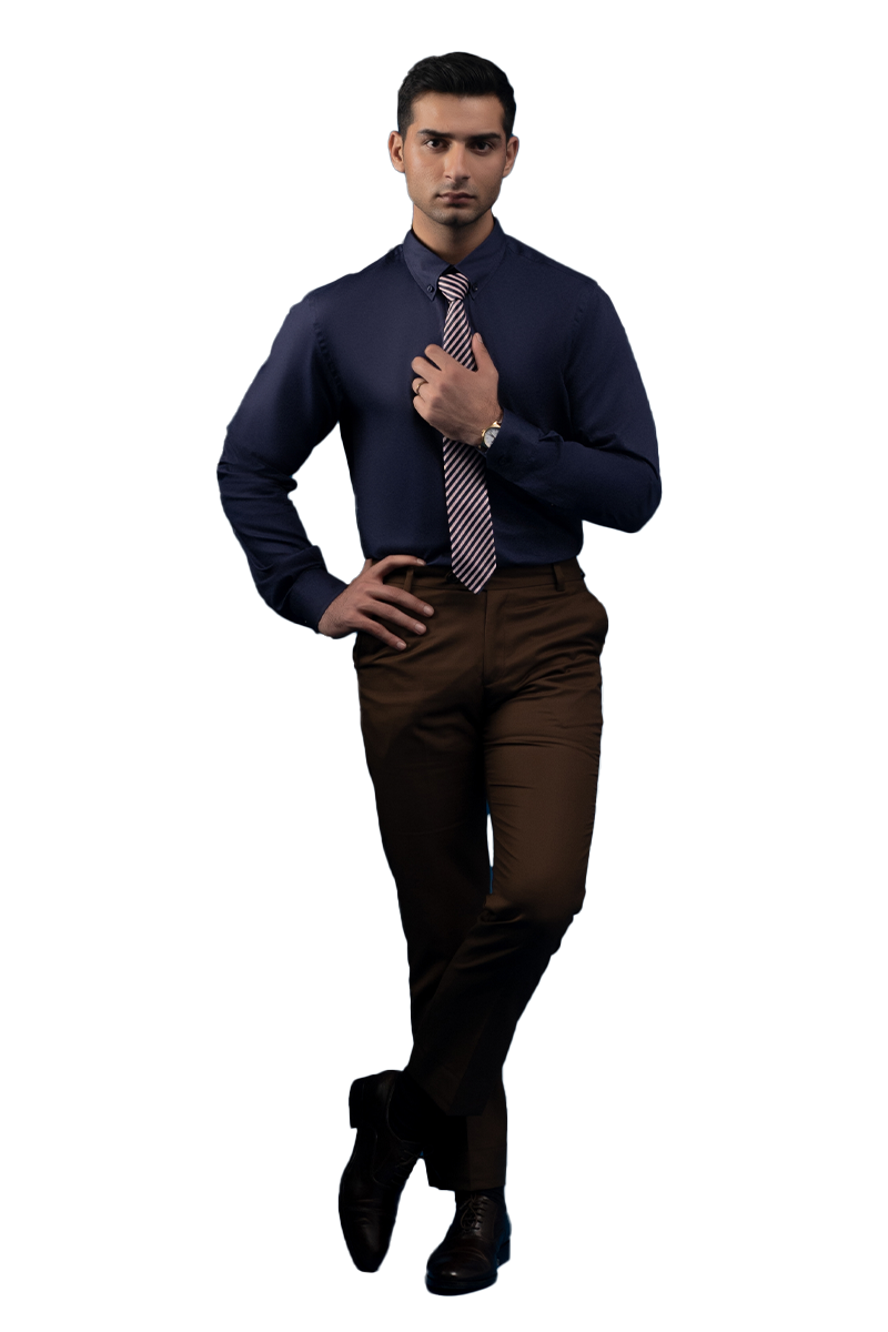 The Tessutod Avgento navy blue formal shirt from our Premium Edition is a seamless blend of practicality and style. Designed in a classic cut with a versatile button-down collar, it offers a structured yet relaxed appeal. The sport front and single cuff lend it a sleek finish, while the slim fit tailoring ensures a sharp and contemporary silhouette. Perfect for both professional and smart-casual settings, this shirt adds depth and versatility to any wardrobe.