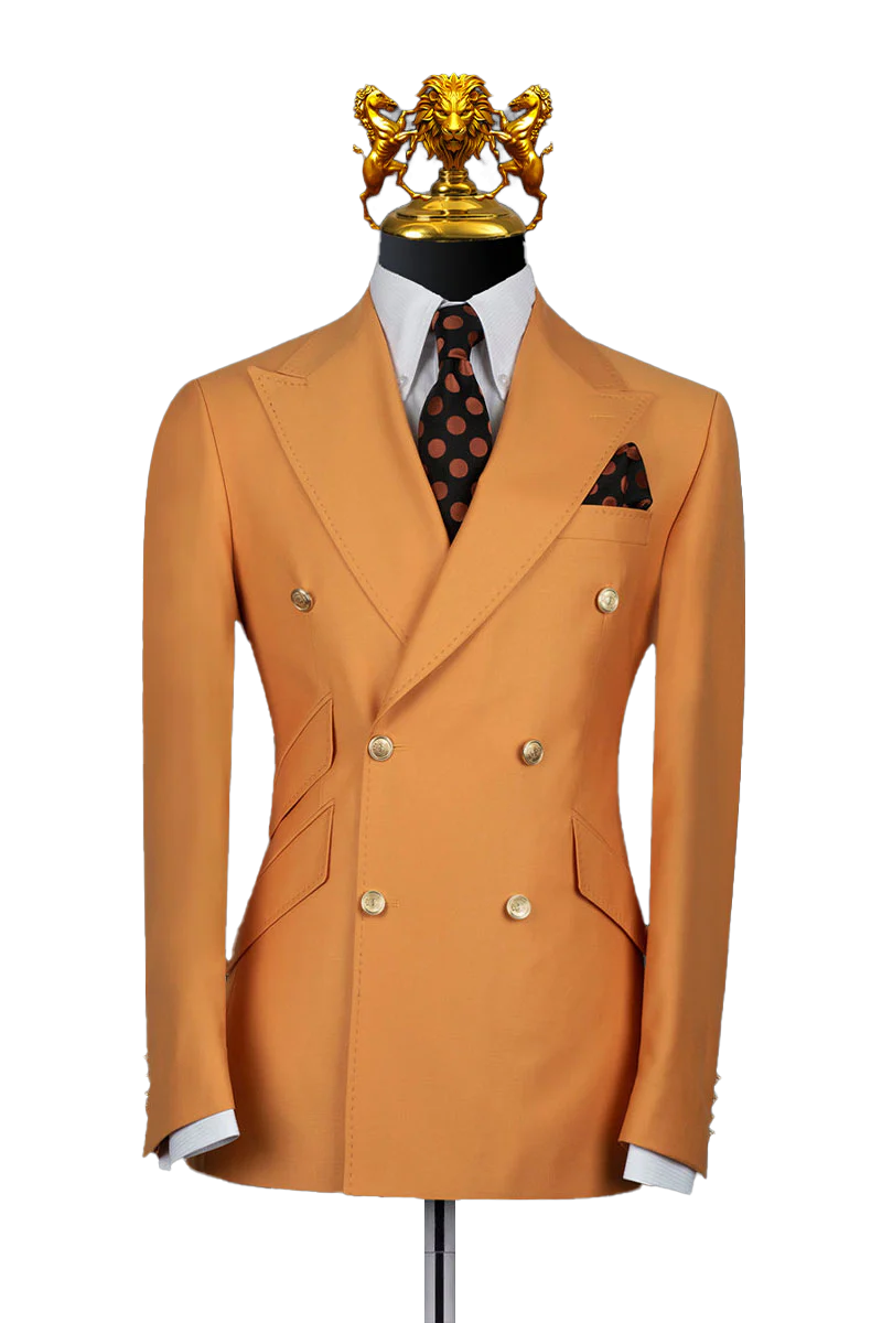 Transform your style with the timeless sophistication of our Limited Edition Friulian Two-Piece Suit in a distinctive rust hue. Radiating opulence, its peak lapels sculpt a remarkable silhouette, complemented by a double-button closure and adorned with a ticket pocket and classic flap pockets, along with meticulously finished four-buttoned sleeves for added refinement.For a sleek and contemporary appearance, we’ve paired this ensemble with hand-stitched slim-fit trousers. Ideal for formal occasions or memorable events, this suit effortlessly harmonizes with light-colored dress shirts, such as crisp white or elegant.