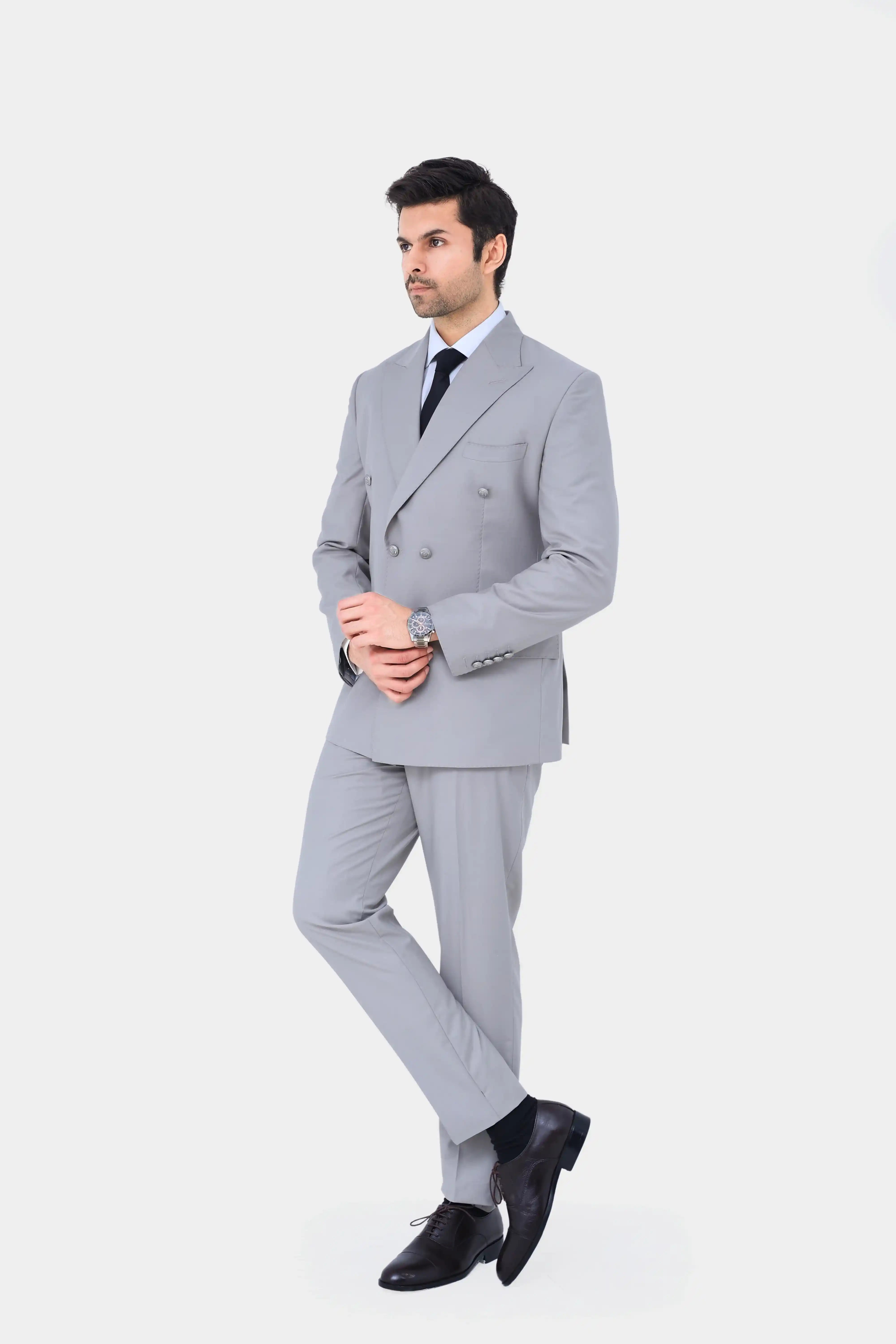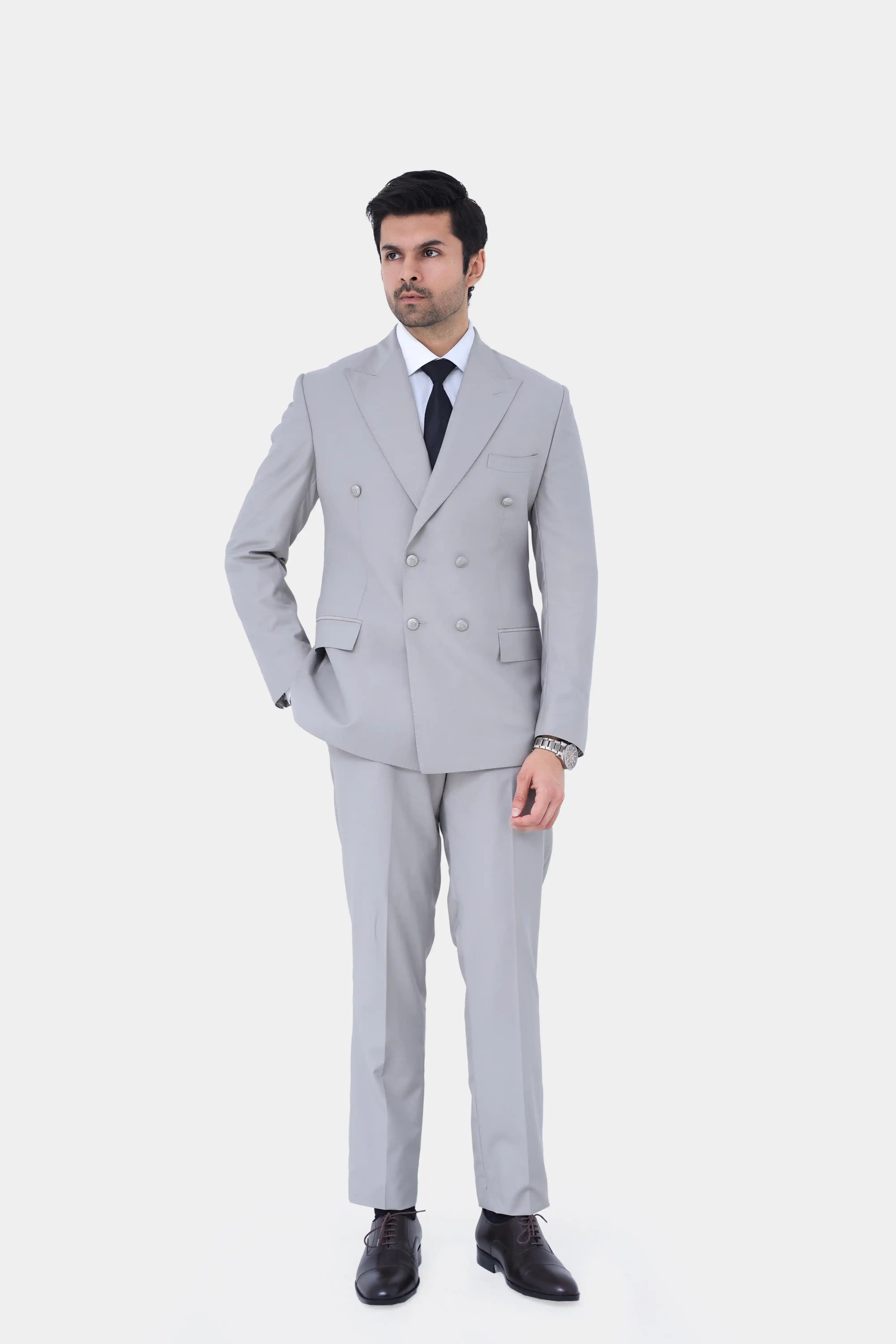 Elevate your statement style with this Skin Tone Premium Edition 2-Piece Suit, tailored for refined distinction. Crafted in a bold double-breasted silhouette with a sharp peak lapel and polished brass buttons. Designed with a curved welt pocket and classic flap pockets, adding depth and tailored precision. Finished with a clean straight hem and paired with overloop waistband trousers for a structured, modern fit. A standout ensemble that blends subtle tones with powerful, contemporary elegance.