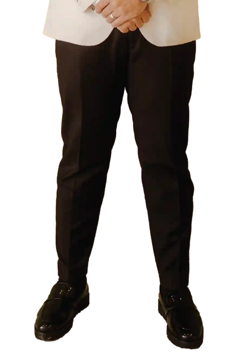 Regular fit trousers with cross pockets, back bone pockets, silk Piping on back crotch’s seams, side seam, inner seam and pockets.