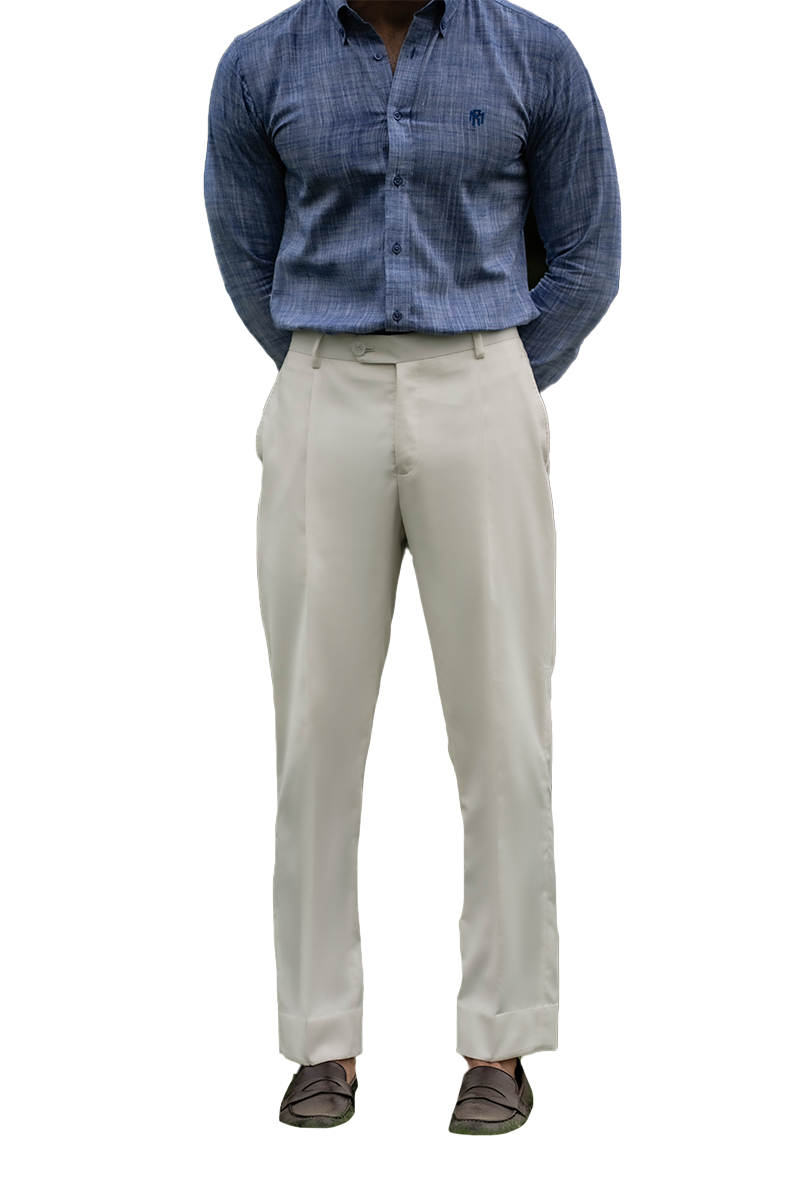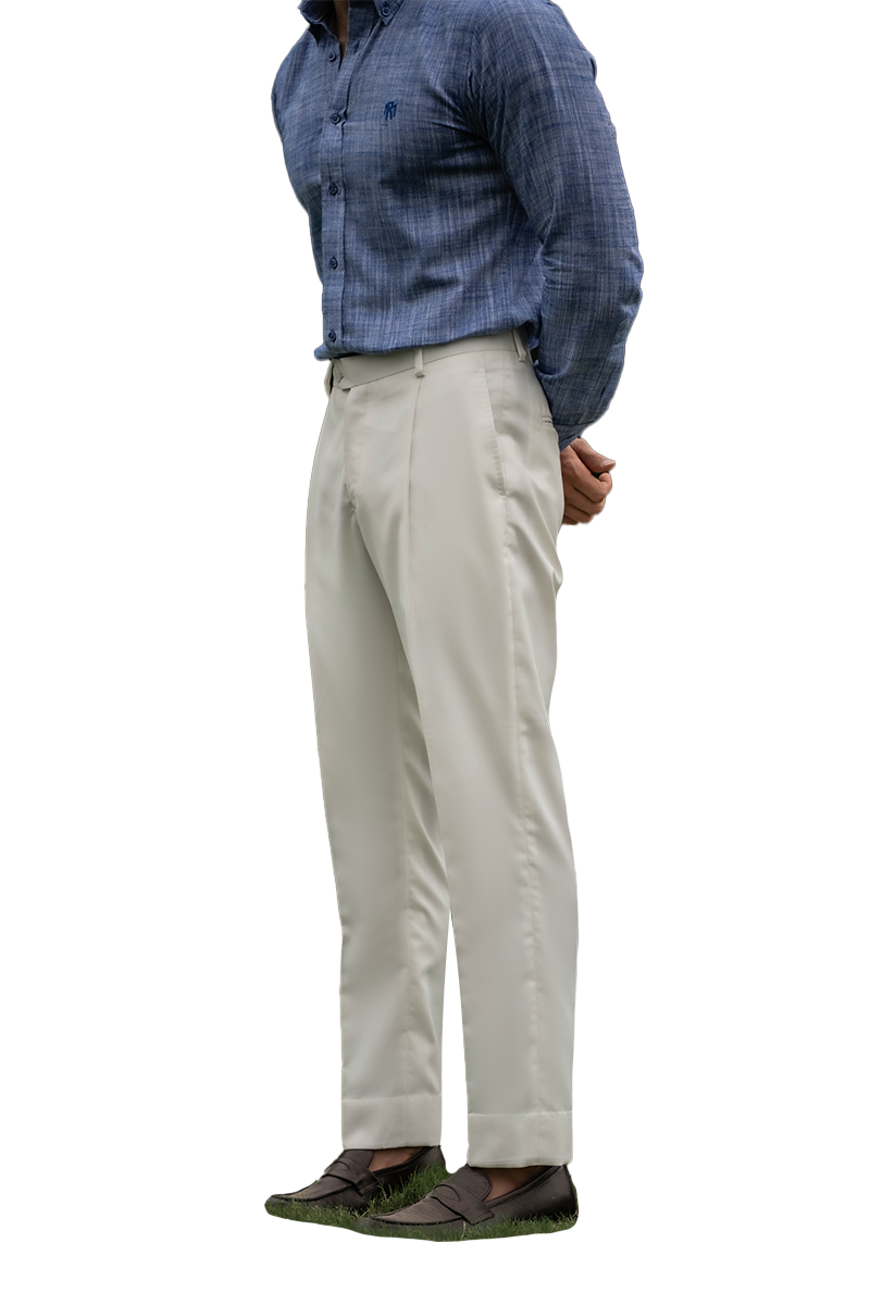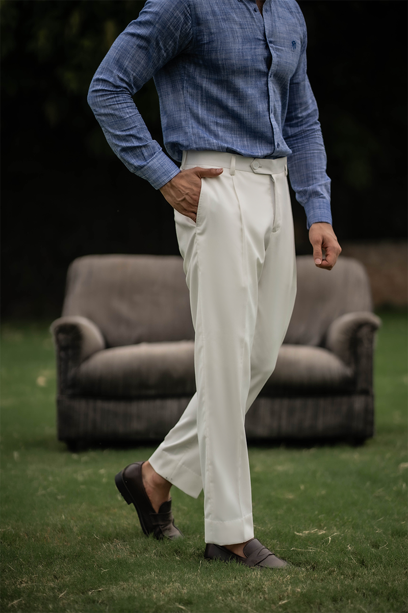 Designed in a cotton-wool blended fabric, Connor in white offers a crisp silhouette tailored for contemporary formality. Featuring cross pockets, a slim fit, and a regular bottom, it delivers a clean, structured look with subtle definition. A versatile addition to refined summer dressing.