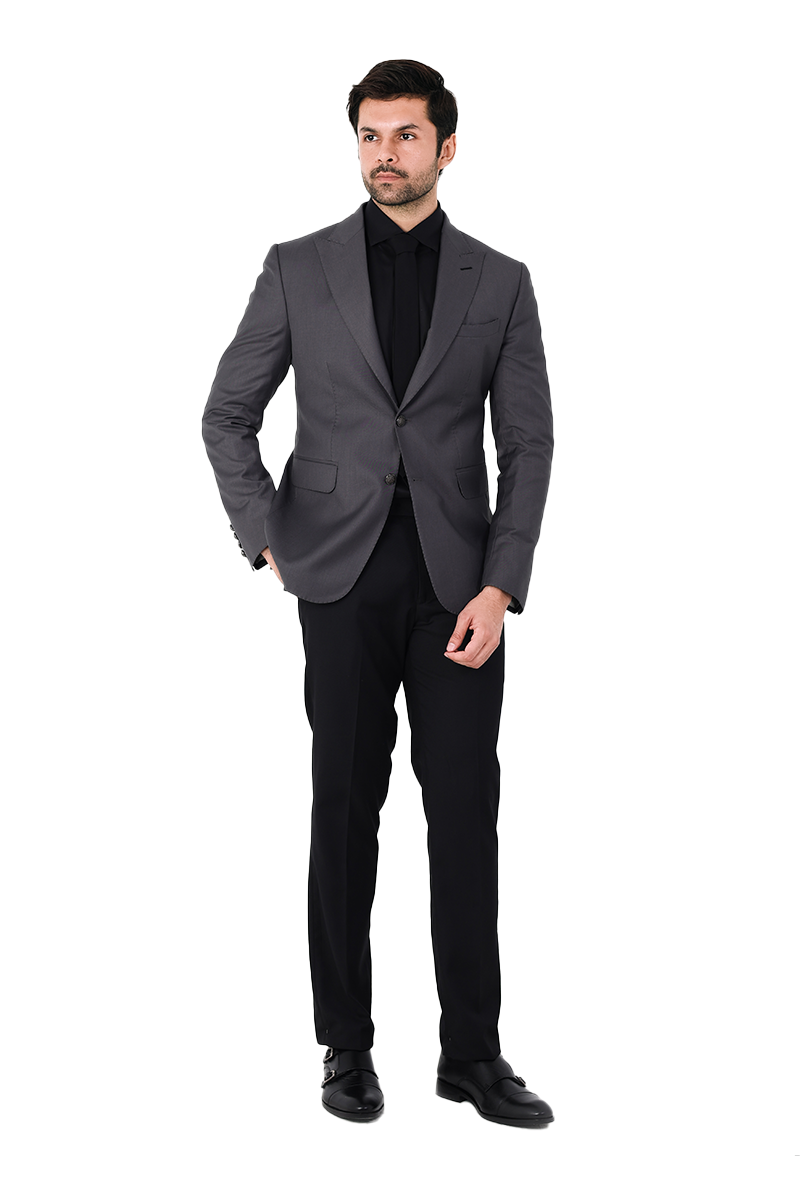 Functional and sleek, the blazer carries a curve wallet pocket and lower flap pockets, all highlighted by detailed hem stitches that enhance its rounded bottom finish. The grey tone lends versatility, making it equally suited for sharp office attire or evening gatherings where presence matters.