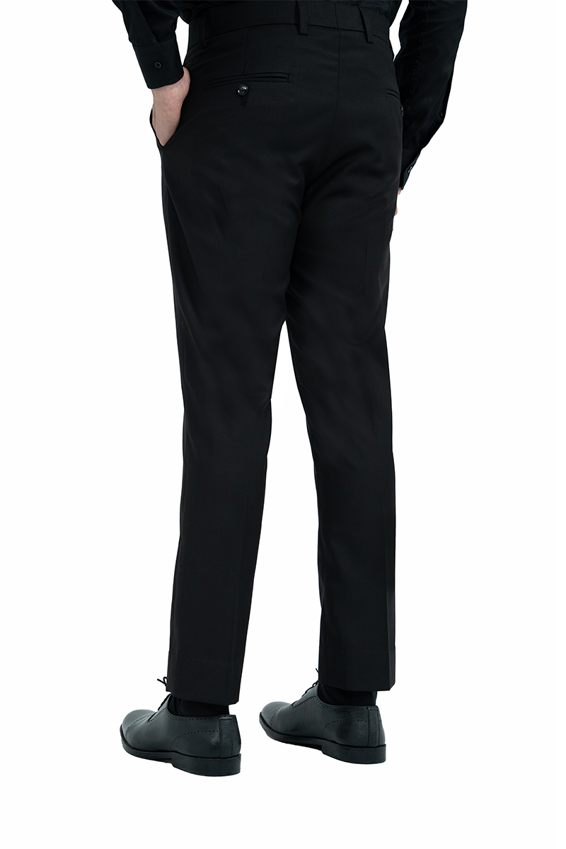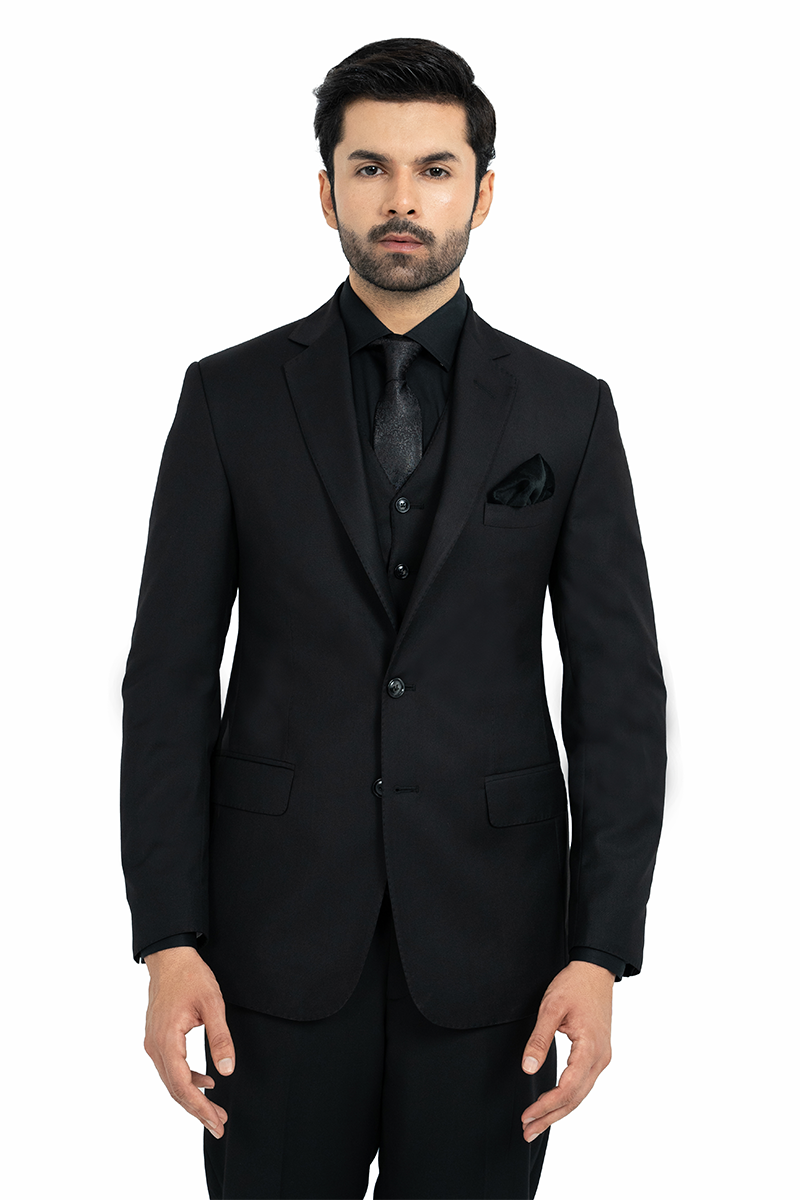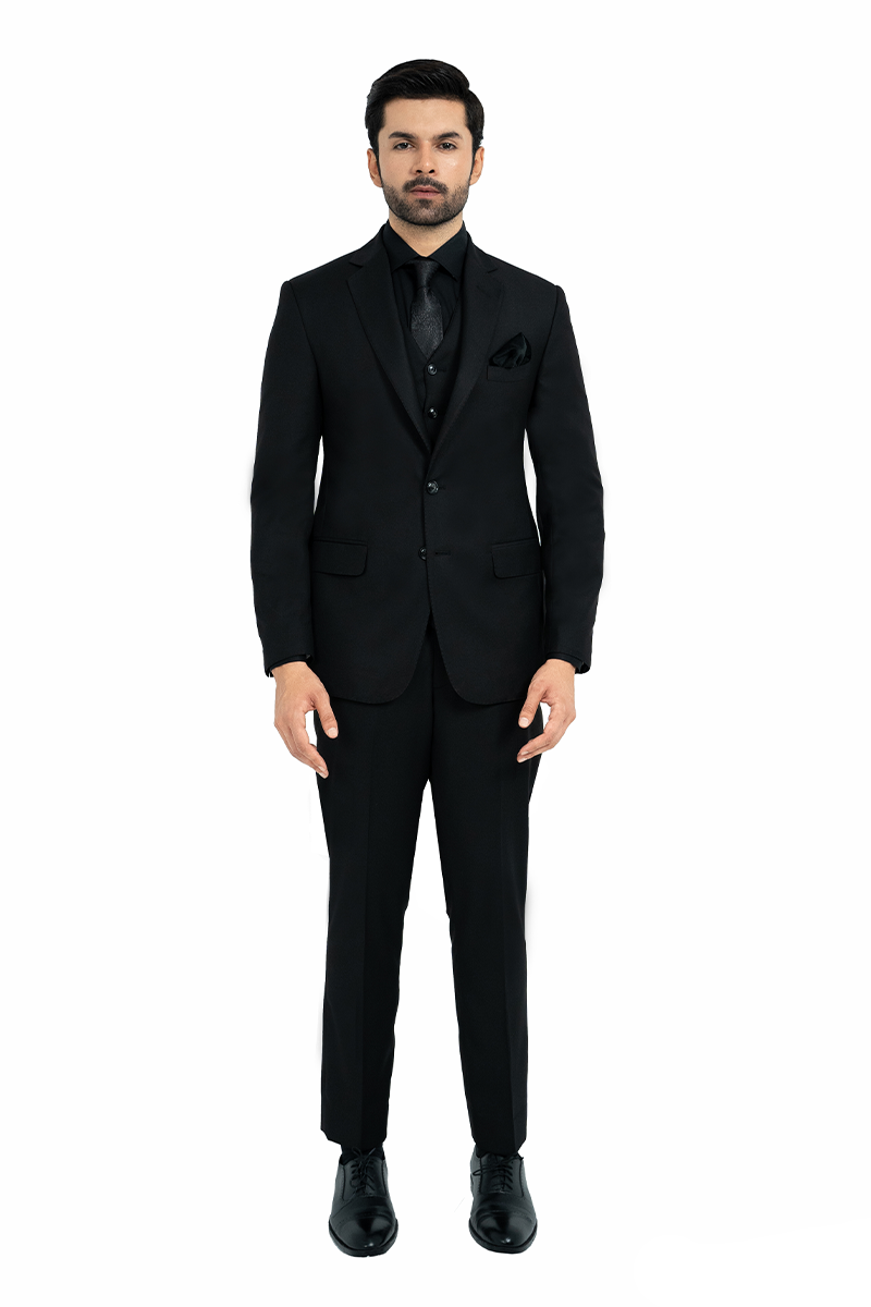 Composed in a black cotton-wool blend, the Reginald three-piece carries a magnetic stillness—sharpened by precision and refined through design discipline.