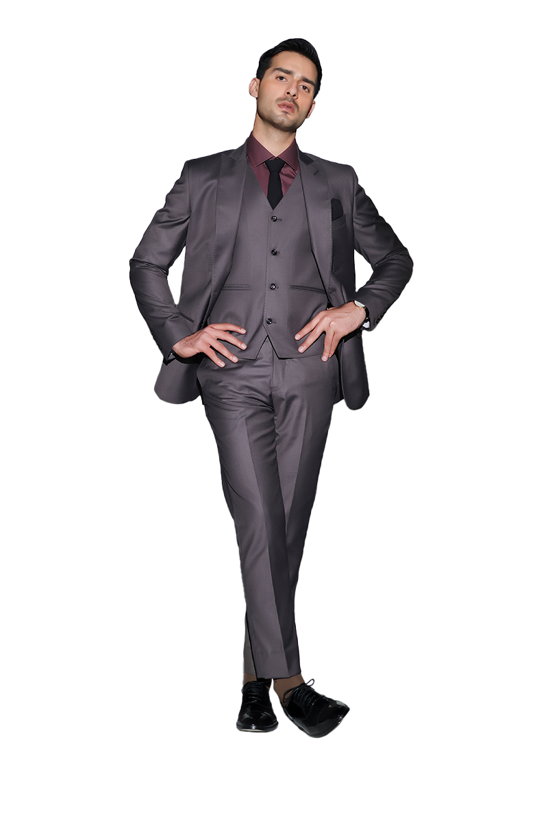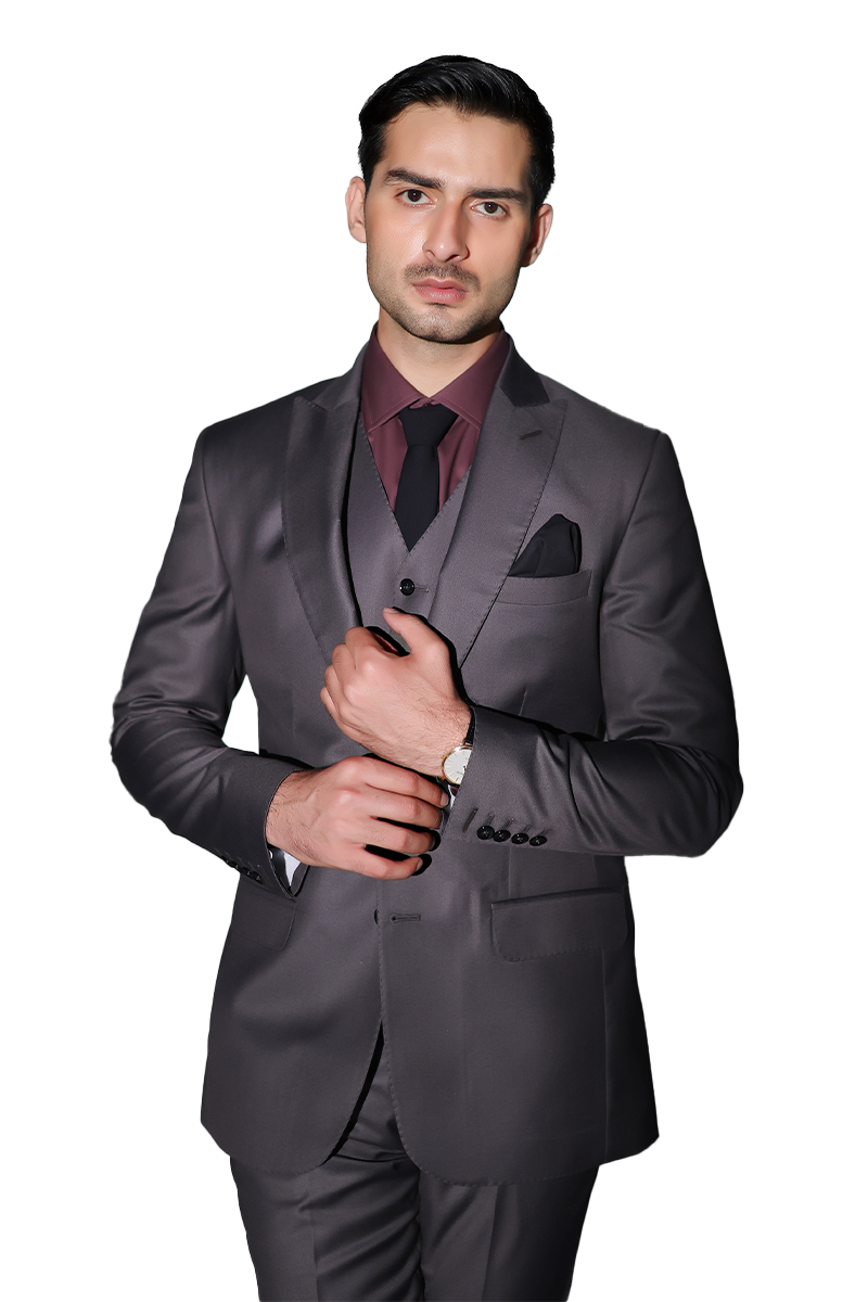 Rooted in depth and contrast, Toranta delivers a commanding visual in a charcoal grey tone that works from boardrooms to after-dark gatherings. The peak lapel adds edge to its clean-cut lines, while the curve wallet pocket and angled flaps offer purposeful detailing against the rounded hem and 2-button front. The V-shaped teddy with a 4-button front brings a grounded structure to the set, carved in the same suiting fabric to keep the flow uninterrupted. Paired with a premium edition pant, this ensemble blends tone and texture into a look that’s crisp, confident, and built for momentum.